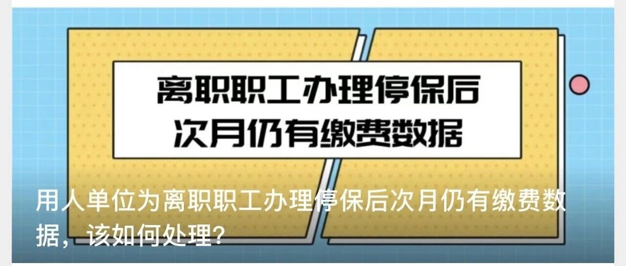 欢迎扫描下方二维码关注: 为了让您更清晰地理解社保费征缴政策、熟悉申报缴纳流程、掌握操作要领,我们特此推出 " 社保缴费指南 " 系列内容, 系统梳理常见社保费申报缴纳问题,为您提供准确、实用、及时的政策解读与操作指引。 单位为离职员工办理停保后 次月发现系统内仍有其缴费数据 如何处理? 今天 小编带您一步步来看 核实停保时间 0 1 1.登录电子税务局,依次点击 【地方特色】-【社保业务】-【职工参保信息查询】 | ← 波间 | | | | | --- | --- | --- | --- | | 胶方转换 | | 仅全接控案中地特色服务功能 | | | 特色力报 | 经保收藏查询 | | | | 作改造势 | 是行费得值服费金 | 职工会谈组织培 | | | 杜鹃业务 | 货股工资单股 | 职工参保信息查询 | | | | 康 新日报 信誉 社保业务 | 31.00 | | | | 单位计会保处理事程 | 建筑设工资保险集团按图解题(A | 加位社保障自我信息 | | | 社保质物馆 | | | | | 是位计保用亿欧 | 社保障信息都行调查数据 | H 保育口款状态不明让图 | | | 社保费湖南 | | ...