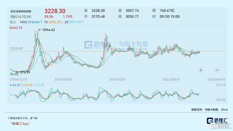 2016年至今,航空板块持续震荡了十年。也是因此,航空板块在市场上关注度一直较低。 回顾过往,航空板块仅有两次较大的涨幅。 一次,是2006年至2007年,一次是2014年至2015年,不难发现,这两年,A股也处于著名的牛市行情。 近一个月来,得益于旅游板块的整体上涨,航空板块也持续上涨。 Wind数据显示,自9月初以来,航空运输精选指数上涨6%,华夏航空、吉祥航空近一个月涨幅均超10%。 而今年国庆,由于国庆和中秋构成8天假期,凑长假变得相当便利,今年国庆长途旅行热度显著上升。 数据显示,今年假期首日,全国出行人次预计超过3.4亿,创下历史峰值。家庭游客也成为出行的绝对主力,在出行人群中占比高达43%。 航旅纵横的数据显示,截至9月29日,国庆中秋假期国内航线的机票预订量已突破1189万张,日均预订量较去年同期增长约3%。 在出行数据的激增之下,今年国庆的机票价格大涨。 在旅游板块已经提前消耗预期的情况下,航司能否在节后继续上涨呢? 01 今年国庆出行最大的变化,莫过于临近国庆,航班跳水的现象消失了。 2025年国庆期间,民航预计执行客运航班总量达13.9万班次,日均超过1.7万班次,同比增长5.7%,其中 ...