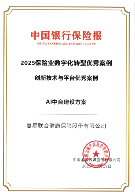 复星联合健康保险AI中台获评“2025年保险业数字化转型优秀案例”