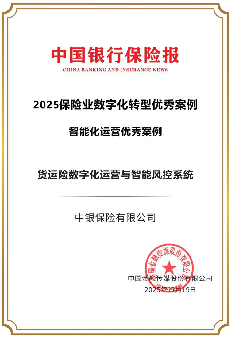 中银保险货运险数字化运营与智能风控系统入选“2025保险业数字化转型案例精编”