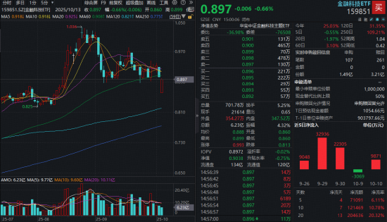周一(10月13日),A股市场全天震荡回升,金融科技低开高走,中证金融科技主题指数开盘一度跌逾 4%,收盘仅跌0.82%,国产软件方向表现活跃。其中,鸿蒙概念龙头润和软件领涨3.91%,普元信息、 信安世纪、先进数通、中科软等跟涨逾2%。下跌方面,指南针、银之杰、财富趋势等互联网券商概念 股下挫逾2%。 热门ETF方面,同类规模超百亿、流动性断层第一的金融科技ETF(159851)场内低开4.76%下探至近2 个月低点,随后快速回升,收盘微跌0.66%,日内情绪大回暖,全天缩量成交6.23亿元。资金近期连续 加码,金融科技ETF(159851)近20日吸金超20亿元。 消息面上,美拟对华实行关键软件出口管制,自主可控势在必行。10月10日,特朗普发布社交媒体,表 达对稀土出口管制的强烈不满,宣布自11月1日起对中国额外征收100%的关税,并对所有关键软件实施 出口管制。机构指出,外部摩擦不断升级,关键核心技术产品自主可控产业趋势明确。 数据来源:沪深交易所等。 责任编辑:杨红卜 短期来看,信创情绪有望持续扩散,或成金融科技近期行情的重要催化之一。国盛证券表示,2025年 为"十五五"定调节点,科技自立有望成为 ...