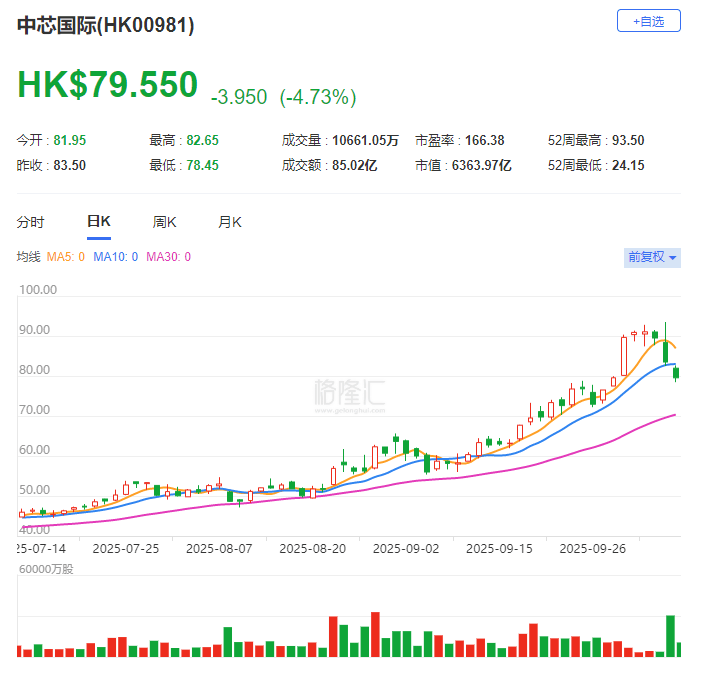 华泰证券:将中芯国际H股目标价由63港元上调至119港元,A股目标价由118.3元上调至238元,维持“买入”评级