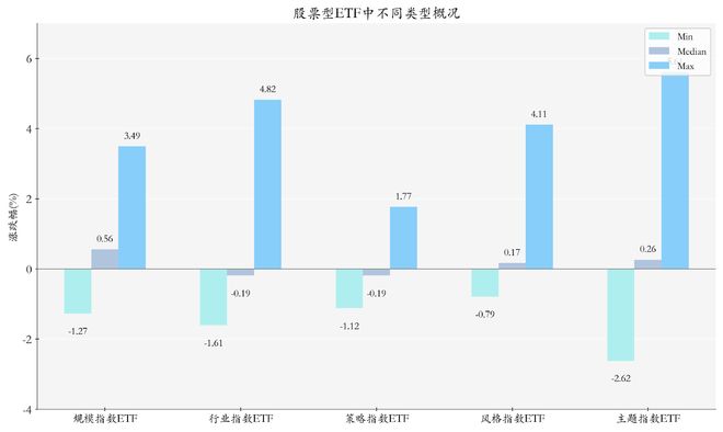 一、证券市场回顾 昨日股票型ETF收益率中位数为0.29%。其中按照不同分类,规模指数ETF中兴银中证科创创业50ETF收 益率最高,为3.49%;行业指数ETF中国联安创业板科技ETF收益率最高,为4.82%;策略指数ETF中中 金MSCI中国A股国际质量ETF收益率最高,为1.77%;风格指数ETF中华夏创业板动量成长ETF收益率 最高,为4.11%;主题指数ETF中国泰中证全指通信设备ETF收益率最高,为5.61%。 南财金融终端数据显示,昨日(11月26日,下同)上证综指日内下跌0.15%,收于3864.18点,最高3879.92 点;深证成指日内上涨1.02%,收于12907.83点,最高13012.33点;创业板指日内上涨2.14%,收于 3044.69点,最高3081.49点。 二、ETF市场表现1、股票型ETF整体市场表现 2、股票型ETF涨跌幅排行 昨日股票型ETF涨幅最高的3支ETF及其收益率分别为:国泰中证全指通信设备ETF(5.61%)、富国中证 通信设备主题ETF(5.54%)、大成创业板人工智能ETF(5.29%)。涨幅前10详情见下表: | 奥别 | 代码 | 基金名称 | 涨跌 ...