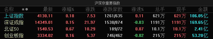 A股指数集体高开:沪指涨0.18%,贵金属、光伏等板块涨幅居前