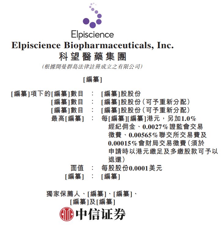 智通财经APP获悉,据港交所11月24日披露,科望医药集团(简称:科望医药)递表港交所主板,中信证 券为其独家保荐人。公司曾于2024年6月向港交所递交过上市申请。根据灼识咨询的资料,截至最后实 际可行日期,全球还没有一种OX40激动剂获得批准,全球仅有两种OX40候选激动剂处于2期或以上阶 段的临床开发中,而公司核心产品ES102是其中之一。 | [編纂]項下的[編纂]數目 | | : [編纂]股股份 | | --- | --- | --- | | [編纂]數目 | .. | [編纂]股股份(可予重新分配) | | [編纂]數目 | ·· | [編纂]股股份(可予重新分配) | | 最高[編纂] | : : | 每[編纂][編纂]港元,另加1.0% | | | | 經紀佣金、0.0027%證監會交易 | | | | 徴費、0.00565%聯交所交易費及 | | | | 0.00015%會財局交易徵費(須於 | | | | 申請時以港元繳足及多繳股款可予以 | | | | 狠覆) | | 町1 | : | 每股股份0.0001美元 | | 「編纂」 | : [編纂] | | 招股书显示,科望医药是一家于201 ...