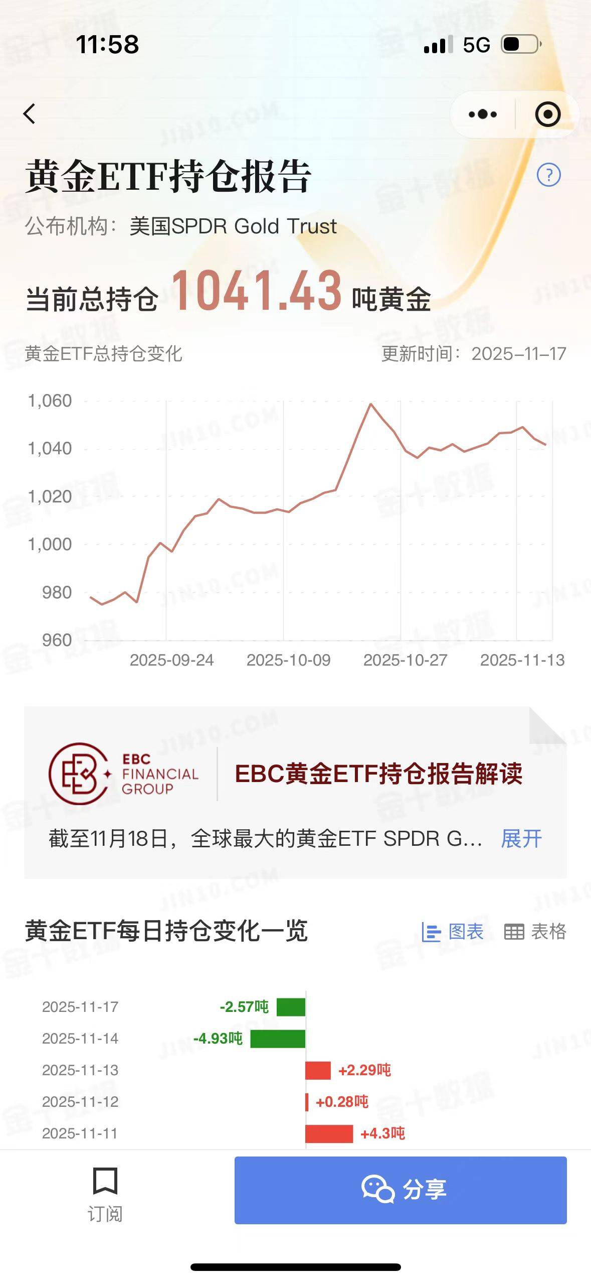 黄金ETF持仓量报告解读(2025-11-19)金价一度遭遇抛售 跌破4000