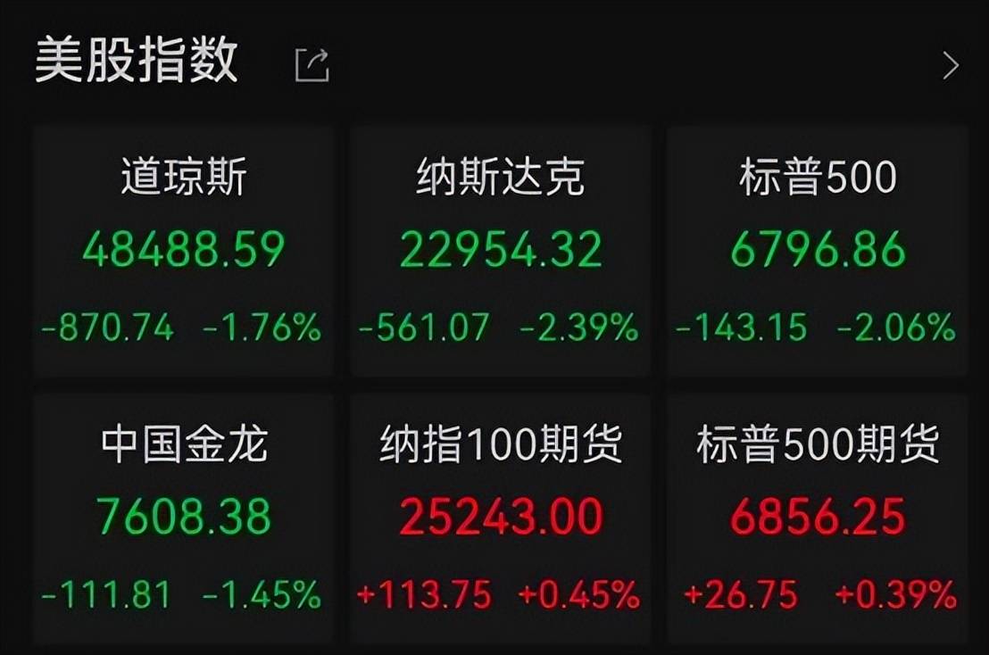 美股集体跳水,纳斯达克指数下跌2.39%,标普500下跌2.06%,道琼斯指数下跌1.76%。 美股7巨头遭遇重挫,英伟达、特斯拉暴跌超过4%,连一向以抗跌著称的苹果罕见下跌了3.46%。 债市更是一片狼藉,十年期美债收益率单日飙升1.84%,直冲4.291%。 美元指数也扛不住了,一下子被砸到98.55。 股汇债三杀,杀的是市场信心,破的是"美债是全球资产定价之锚"这个长期共识。 资本正在用脚投票,全球资产格局一夜生变! 昨夜,一则消息引发全球资产巨震:丹麦养老金宣布将逐步退出美债。 市场瞬间炸了,美国遭遇股、汇、债三杀! | 美股指数 L | | | | --- | --- | --- | | 道琼斯 | 纳斯达克 | 标普500 | | 48488.59 | 22954.32 | 6796.86 | | -870.74 -1.76% -561.07 -2.39% -143.15 -2.06% | | | | 中国金龙 | 纳指100期货 | 标普500期货 | | 7608.38 25243.00 6856.25 | | | | -111.81 -1.45% +113.75 +0.45% +26.75 ...