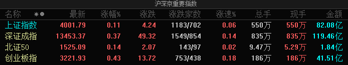 A股指数集体高开:创业板指涨0.43%,氟化工、贵金属等板块涨幅居前
