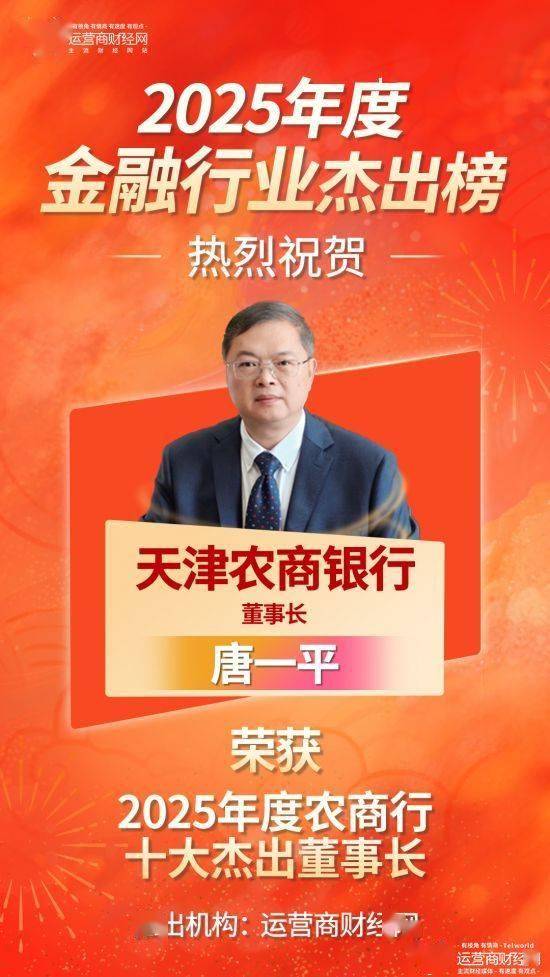 天津农商银行董事长唐一平入选“2025年度农商行十大杰出董事长”