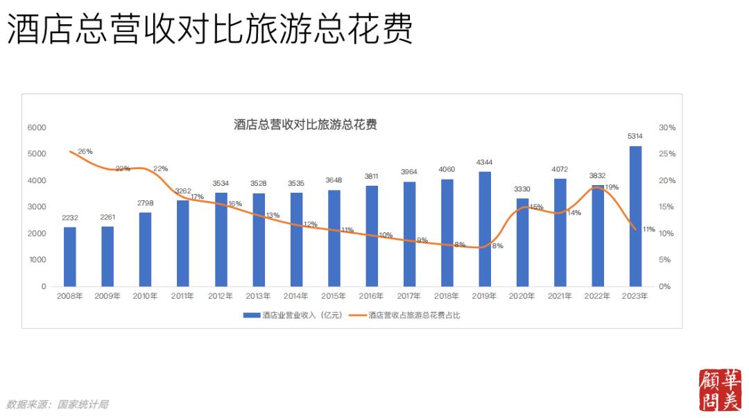 酒店客房量在增加,经营数据却在变差;全国出游数据在增长,住宿支出占旅游收入的占比却在下滑——当诸多不太亮眼的数据缠绕着酒店业时,整个行 业在进入迷惑和困顿当中。 行业现状: 有"面子"但没"里子" 准确认识酒店业的发展,需要从多个维度进行剖析。 《酒管财经》认为,隶属于旅游业的酒店行业,当下的处境是"有面子""无里子"。 面子是行业地位。原国家旅游局局长邵琪伟表示,从国家战略定位层面来讲,旅游业的定位已经从"产业支撑"升级为"强国支柱"。 同时,国家高度重视住宿业发展。近期,商务部、文化和旅游部等9部门联合印发《关于促进住宿业高质量发展的指导意见》,围绕品质化、智慧化、融 合化、绿色化、国际化发展方向,提出了一系列具体措施。提出要培育中高端酒店和民宿品牌、打造国际知名企业,为住宿行业品牌升级按下了"加速 键"。 但是,整个行业的经营情况并不理想。 在今年第三季度,四大酒店集团的RevPAR、ADR以及OCC等核心经营指标,几乎都出现下滑。 STR方面分享的数据显示,在过去12个月中,我国酒店客房增加了3.5%,但是需求只增加了0.4%,导致客房收入出现1%的下滑。 因为市场供大于求,导致行业内卷加剧。据中国饭 ...