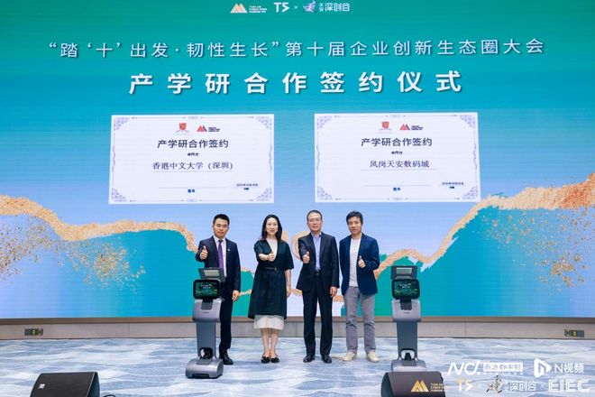 10月30日,"踏'十'出发 · 韧性生长"天安数码城第十届企业创新生态圈大会举行。国内顶尖专家学者、 企业领袖等大咖齐聚,共同探讨企业如何在新周期中"活得好、走得远"。来自粤港澳大湾区各地超过 500位企业家参加本届大会。 会议上,凤岗天安数码城与香港中文大学(深圳)正式签订了框架合作协议,建立战略合作关系,双方 将在天安阳光大厦共建"AI+智能硬件创新中心",中心将导入香港中文大学(深圳)人工智能、智能硬 件相关领域的教授团队与顶尖科研资源,打通从实验室到生产线的创新链路,加速科研成果转化为现实 生产力;同时将整合天安数码城集团旗下10000+家优质企业资源,为技术落地提供丰富场景与应用需 求,推动先进制造业的集聚与升级。 同时,双方还将共建产学研人才实训基地,联合举办AI+智能硬件创新挑战大赛,以赛事为纽带发现前 沿项目,优胜团队可优先入驻创新中心,获得各类扶持与投融资、市场对接,形成科研、企业、市场的 良性循环。 制造美学,是制造业走向高质量发展的文化自觉,东莞提出"有一种制造美学,叫东莞"的城市IP。在此 背景下,凤岗天安数码城在凤岗镇委、镇政府的支持和指导下,顺势发起天安制造美学园区建设,携手 东 ...