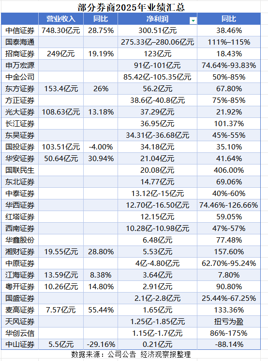 2026年1月30日盘后,长江证券(000783)(000783.SZ)、东吴证券(601555)(601555.SH)、中金 公司(601995)(601995.SH)、国海证券(000750)(000750.SZ)等多家券商发布了业绩预增公告。 但在2月2日周一开盘时,上述券商的股价齐齐收跌,分别下跌7.04%、2.09%、0.96%和2.35%。 1月以来,上市券商业绩预喜,股价却遭重锤。不少券商股的投资者处在焦虑之中。时常有持有券商股 的投资者向中信证券(600030)(600030.SH)等头部券商的董秘提问股价相关的问题。有投资者提 问:"为何业绩一直在增长,股价却一直在跌?" 截至2月4日,已有29家券商(含上市公司控股的券商子公司)披露了2025年的财务数据或业绩预告,业 绩大幅增长是主基调,中信证券的净利润突破300亿元,刷新行业新纪录;"合体券商"国联民生 (601456)(601456.SH)的净利润涨幅高达406%。 今年以来,券商板块整体表现低迷,数据显示,截至2月4日收盘,中证全指证券公司指数 (399975.SZ)年内涨幅为-1.83%,跑输上证指数(3.36%)。 2月2日,A ...