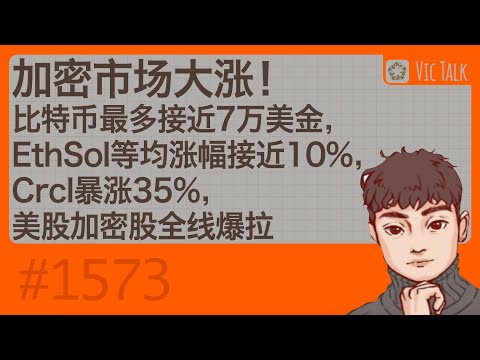 加密市场大涨!比特币最多接近7万美金,EthSol等均涨幅接近10%,Crcl暴涨35%,美股加密股全线爆拉【Vic TALK 第1573期】