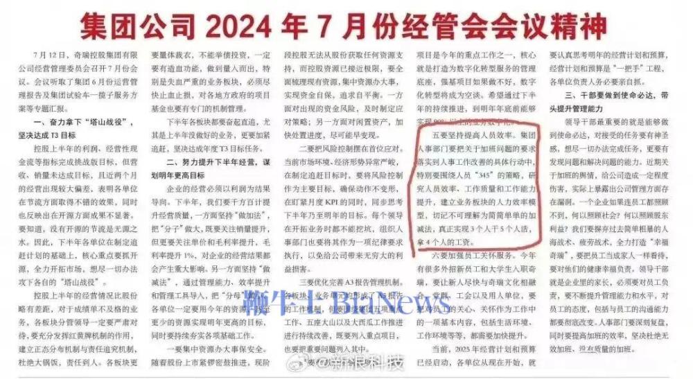 " 这与奇瑞对外宣称的"反内卷"严重不符。 就在今年7月,奇瑞董事长尹同跃在奇瑞集团年中干部大会上,曾明确承认企业存在会议过多、过长及周末加班等问题,直言"把员工的时 间不当时间,非常不人性化" ,并当场鞠躬致歉。随后该公司迅速发布《关于大幅精简会议、提升效率的通知》,明确要求周末禁止组织公 司级会议。 董事长倡导"不加班", 内部却在"逼加班" 近日,一则"奇瑞员工拒绝周六周日加班被辞退"的录音内容在社交媒体引发广泛关注。在这则录音中,当事人因未按领导要求在周末加班被 斥责,最后被辞退。《次世代车研所》栏目就上述内容向奇瑞官方进行求证,截至发稿,官方暂无回应。 但据多名奇瑞员工透露,此事发生于今年9月,录音中当事人为奇瑞FR事业部校招生, "他们这个部门相对轻松,但也加班不断" 。有员工直 言,奇瑞周末加班绝非个例而是普遍, "晚上6点,飞书自动变成下班,实际上大家都没下班。 关于近期录音事件,员工东华(化名)向《次世代车研所》栏目表示,入职时奇瑞对外宣称工作时间是早上9点到下午5点半,而实际上都 是八九点钟下班, "每天额外工作3小时是很正常的事情" 。令人无法忍受的是周末加班文化,而且部分岗位没有加班费 ...