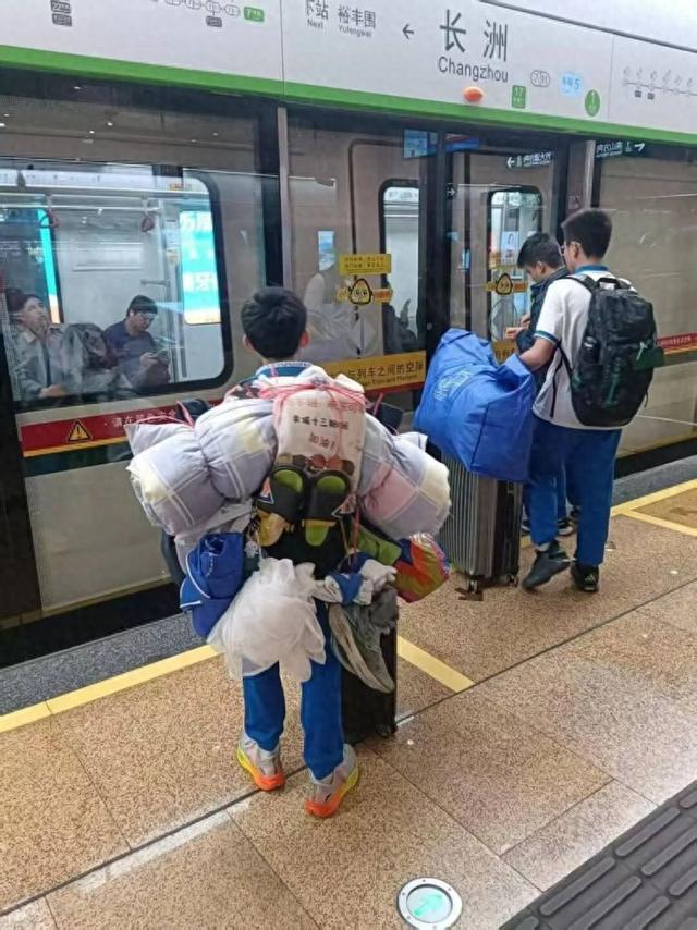 近日,一张广州中学生的背影图片火爆网络。 记者了解到,该同学是广州市黄埔军校纪念中学初二年级的何梓睿。 1月31日,记者联系到了何梓睿的妈妈,她告诉记者,30日是离校日,孩子六点就起床在宿舍整理行李 了。上个周末,她问过孩子离校那天要不要去接,孩子拒绝了,说自己可以"搞定"。周日,他在家里自 己用绳子"演练"了一下,以书包作为一个固定点,想办法用绳子把各种杂七杂八的东西串起来绑好,还 盘算了把重的东西放箱子里,轻一些的绑好背着,什么东西要绑或者挂在外面,他都进行了充分思考。 "他模拟了绳子应该穿过哪个点,怎么固定,所以你看到图片里他那些行李大概是一个闭环的样子。"梓 睿妈妈说,孩子一直对军营比较向往,参加过两次国防教育夏令营,可能有教过打包技巧,但没有专门 去学或者训练。 黄埔军校纪念中学到长洲地铁站步行4分钟左右,梓睿总共坐四五个站,中途转一次线就能到家。"演 练"到心里有谱之后,他和家长约定好离校当日他自己坐地铁回,爸爸在家附近的地铁站"接应"就可以 了。据悉,这也不是孩子第一次这么"操作",上学期放假前他也是这样把竹席、书架等背回家。 动手能力从小就突出 很喜欢国防教育的夏令营 "他动手能力从小就很突出 ...