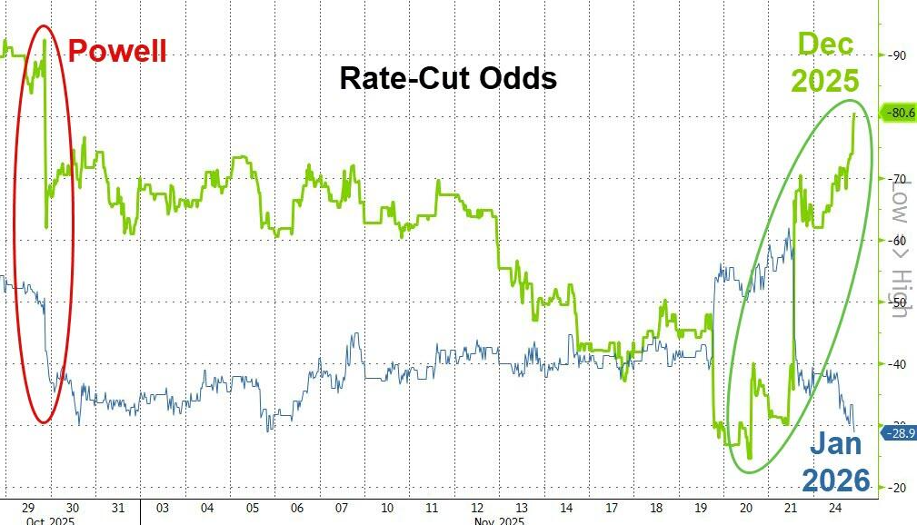 “鲍威尔盟友”连续发声支持降息,市场对美联储12月降息预期大幅升至80%
