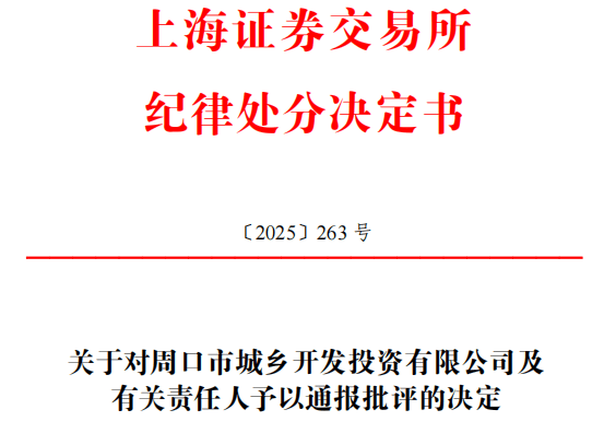 4.82亿募集资金违规转借!周口城乡开发公司被纪律处分,原董事长、总经理被通报