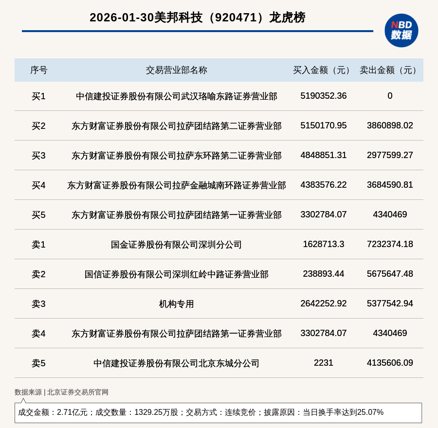 机构席位卖出537.75万 北交所上市公司美邦科技登龙虎榜