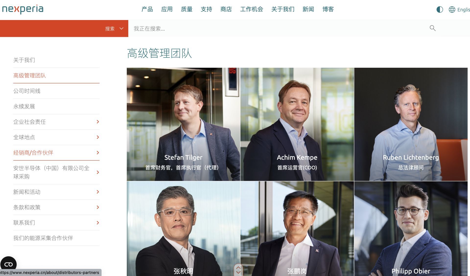 安世半导体官网10月14日更新消息显示,首席财务官Stefan Tilger将担任临时首席执行官,Achim Kempe将继续担任首席运营官。 | nexperia | | 产品 应用 质量 | | 支持 | 商店 | 工作机会 | | --- | --- | --- | --- | --- | --- | --- | | | 搜索 > | 我正在搜索 ... | | | | | | 关于我们 | | 高级管理团队 | | | | | | 高级管理团队 | | | | | | | | 公司时间线 | | | | | | | | 永续发展 | | | | | | | | 企业社会责任 | > | | | | | | | 全球地点 | > | | | | | | | 经销商/合作伙伴 | > | | Stefan Tilger | | | | | 安世半导体(中国)有限公司全 | > | | 首席财务官,首席执行官(代理) | | | | | 球采购 | | | | | | | | 新闻和活动 | > | | | | | | | 条款和政策 | > | | | | | | | 联系我们 | > | | | | | ...