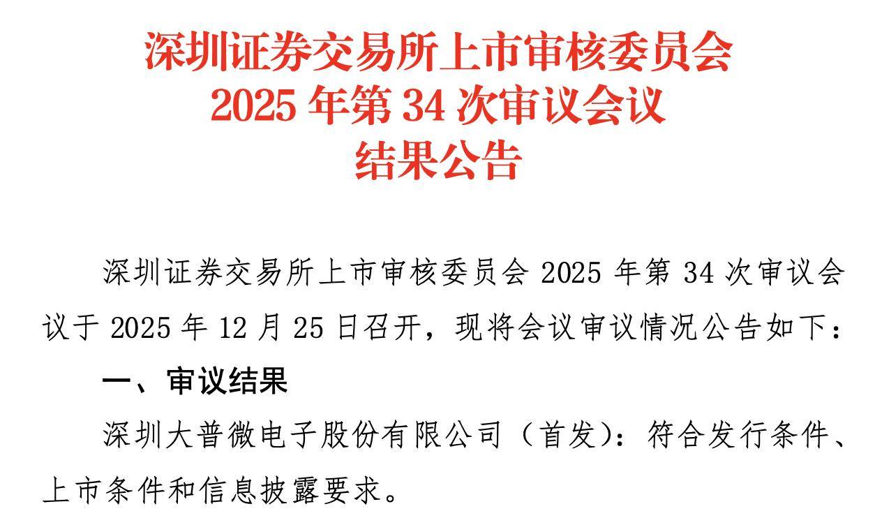 Core Viewpoint - Shenzhen Dapu Microelectronics Co., Ltd. has passed the initial public offering (IPO) review by the Shenzhen Stock Exchange, marking it as the 103rd company approved for listing this year [1]. Group 1: Company Overview - Dapu Micro primarily engages in the research and sales of enterprise-level SSD products for data centers, being one of the few domestic semiconductor storage providers with full-stack self-research capabilities in "controller chip + firmware algorithm + module" [3]. - The controlling shareholder is Dapu Haide, which directly holds 13.72% of the company's shares and possesses special voting rights, resulting in a total voting power of 54.78% [3]. - The actual controller, Yang Yafei, indirectly controls 66.74% of the voting rights through Dapu Haide and Dapu Haiju [3]. Group 2: IPO Details - Dapu Micro plans to issue no more than 43,621,636 shares and aims to raise approximately 1,877.8522 million yuan, which will be allocated for the development and industrialization of next-generation controller chips and enterprise-level SSDs, as well as for a production testing base project and working capital [3]. - The company is set to list on the Shenzhen Stock Exchange's ChiNext board [3]. Group 3: Underwriting and Market Context - The sponsor for Dapu Micro's IPO is Guotai Junan Securities Co., Ltd., marking the 14th successful IPO project for the firm this year [2]. - The IPO review committee's meeting raised questions regarding the sustainability of the company's performance growth, market competition landscape, and the feasibility of turning profitable by 2026 [4].