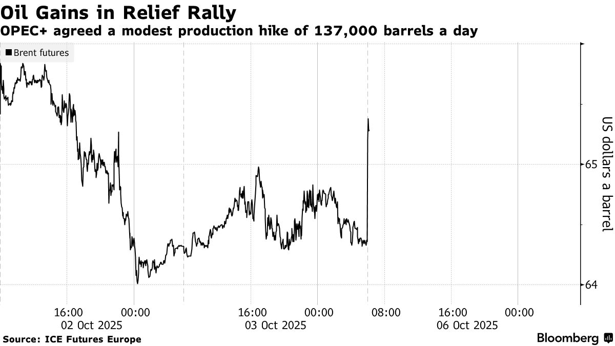 智通财经APP获悉,当地时间10月5日,OPEC+同意11月小幅增加原油产量,增产幅度为13.7万桶/日。此举缓解了交易员对超大规模增产的担忧,油价周一 开盘走高。截止发稿,布伦特原油涨0.93%,报65.13美元/桶;WTI原油涨0.94%,报61.45美元/桶。 然而,随着部分消费需求开始放缓,未来数月市场格局可能出现变化。国际能源署(IEA)就预测,随着OPEC+持续增产及其竞争对手供应攀升,2026年全球 石油供应将出现创纪录过剩。 消息人士透露,在此次会议召开前,OPEC+内部两大核心产油国——俄罗斯与沙特阿拉伯的立场存在分歧。两名消息人士表示,俄罗斯主张维持与10月持 平的小幅增产幅度,一来可避免对油价造成下行压力,二来受乌克兰冲突相关制裁影响,俄罗斯自身也难以大幅提高产量。而会议前另有消息人士指出,沙 特阿拉伯原本希望将增产量提升至这一数字的2倍、3倍甚至4倍,即分别为27.4万桶/日、41.1万桶/日或 54.8 万桶/日。沙特提出这一诉求的原因在于其拥有 闲置产能,且希望更快夺回市场份额。 今年以来,在经历多年产量限制后,OPEC+正通过逐步恢复闲置产能的策略重新争夺市场份额。尽管供应增加, ...