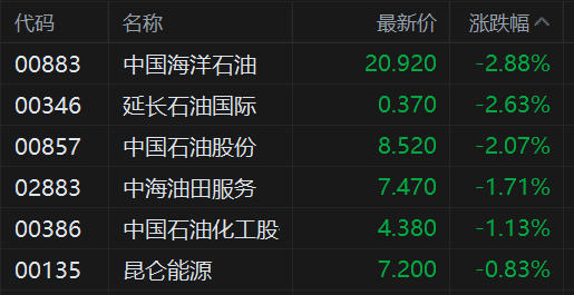 港股异动丨石油股集体走低 中国海洋石油跌近3% 国际原油延续跌势