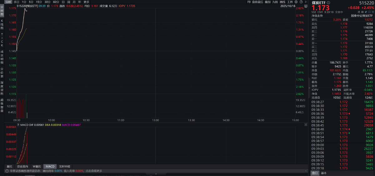 冷冬概率增加,煤炭需求旺盛,全市场唯一煤炭ETF(515220)盘中涨超2%