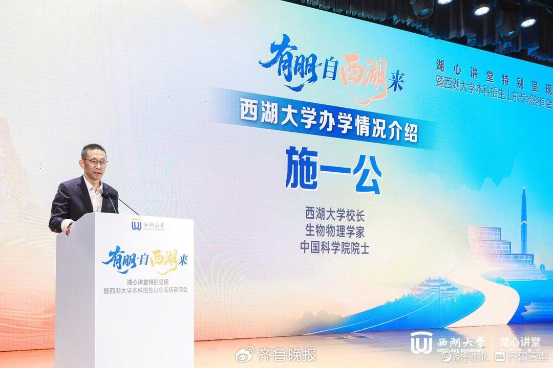 Core Viewpoint - The event hosted by Shandong University and led by Shih Yigong, president of Westlake University, serves as a platform to promote the university's educational philosophy and recruitment efforts in Shandong province [2][3]. Group 1: Recruitment and Educational Philosophy - Shih Yigong emphasizes the importance of engaging with students and parents in Shandong, highlighting the university's commitment to comprehensive evaluation for admissions starting in 2026 [3][6]. - Westlake University is characterized as a new type of research-oriented university, established with support from social forces and the government, focusing on high standards and quality over quantity [6][7]. - The university's recruitment strategy includes a "631" evaluation model for 2026, where 60% of the admission criteria will be based on college entrance examination scores, 30% on school interviews, and 10% on academic performance [7][8]. Group 2: Student Characteristics and Values - Shih Yigong describes Shandong students as proactive and open-minded, asking insightful questions during recruitment events, which reflects their quality and depth of thought [5][8]. - The university seeks students who demonstrate critical thinking and empathy during interviews, indicating a preference for candidates who can engage in meaningful dialogue and show social responsibility [8][9]. - Westlake University aims to cultivate future leaders, not just scientists, by providing a supportive environment that respects students' diverse interests and career paths [9]. Group 3: University Advantages - Westlake University offers advanced knowledge, exceptional research capabilities, and a diverse cultural environment that fosters innovation and a sense of ownership among students [9]. - The university clarifies that while it primarily trains future scientists, it does not limit its graduates to scientific careers, allowing for a broader range of professional pursuits [9].