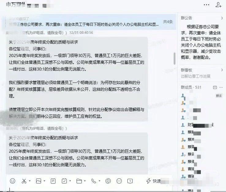 年终奖“领导拿30万元、员工仅1万元”,员工维权被领导殴打?申银万国期货:网传消息严重不实,已报警