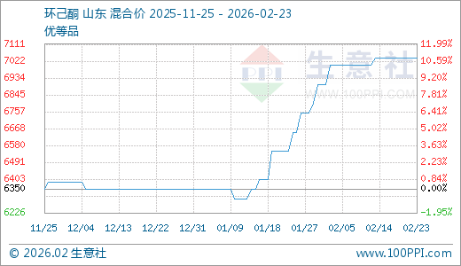 02月23日环己酮7037.50元/吨 60天上涨10.83%