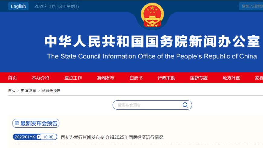 国新办1月19日将举行新闻发布会 介绍2025年国民经济运行情况
