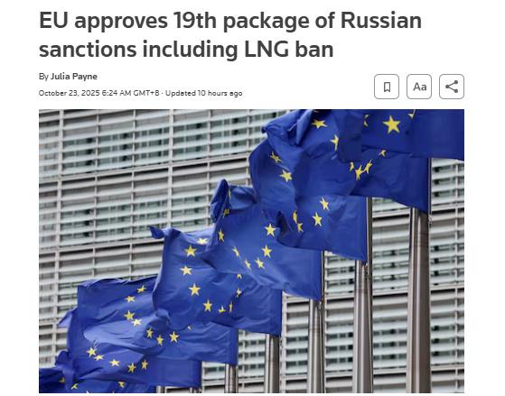 欧盟通过第19轮对俄制裁,首次禁止俄液化天然气进入欧洲市场;特朗普称“是时候对俄实施制裁”