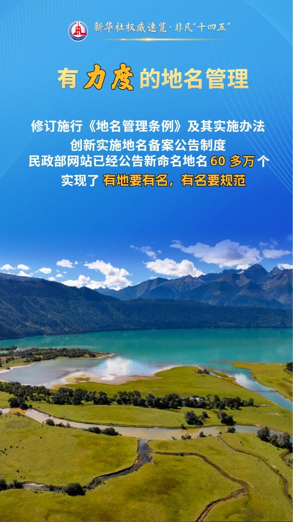 创新开展"乡村著名行动",打造"地名+农文旅"融合发展新模式,目前已命名乡村地名71万条,设 置地名标志60多万块,采集上图乡村地名和农家乐、采摘园等兴趣点993万条,基本覆盖了全国200多万 个自然村屯。乡村地区"有地无名""有名无标"的情况得到有效改善,方便了自驾出游、快递进村、山货 进城。 地名是社会基本公共服务信息,关系着群众的生产生活,也关系着经济社会发展秩序。记者今天从 国务院新闻办举行的"高质量完成'十四五'规划"系列主题新闻发布会上获悉,"十四五"期间,我国修订 施行《地名管理条例》及其实施办法,建立统一监督管理、分级分类负责的工作机制,健全地名联席会 议制度。创新实施地名备案公告制度,目前,民政部网站已公告新命名地名60多万个,实现了有地要有 名,有名要规范。 持续建设中国·国家地名信息库,收录各类地名数据1480万条,调用总量近7亿次,有效服务了社会 治理、民生保障、文脉传承。完善地名标志标准体系,推广智能地名标志设置,方便群众导航定位,擦 亮美丽中国地名"名片"。 健全完善地名文化遗产评价体系,充分挖掘千年古地名的文化内涵,打开中华地名文化记忆。建立 地名保护名录制度,不随意更改老地名, ...