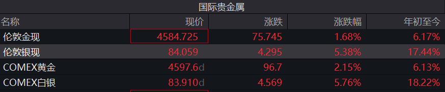 来源:智通财经 黄金首次站上4600美元。 1月12日亚洲交易时间,黄金现货、期货双双突破4600美元/盎司,日内一度大涨约2%,再创历史新 高。截至发稿,现货黄金报4584.725美元/盎司,涨1.68%;COMEX黄金期货价格报4597.6美元/盎司, 日内涨2.15%。 白银同步飙升。白银现货站上84美元/盎司,涨幅超5.5%,再创历史新高。截至发稿,伦敦银现报 84.059美元/盎司,日内涨5.38%,年初至今已涨17.44%;COMEX白银报83.91美元/盎司,日内涨 5.576%,年初至今已涨18.22%。 国内市场同样热情高涨。文华财经数据显示,1月12日,沪金期货主力合约最高触及1031.3元/克,刷新 历史新高,收报1026.28元/克,涨2.57%;沪银期货主力合约表现更为亮眼,最高触及20998元/千克,创 下该合约上市以来的新高,收报20945元/千克,单日大涨14.42%,成功站稳20000元/千克整数关口。 国内黄金饰品价格也普遍上涨,多个品牌足金报价突破1400元/克。其中,周生生、老庙足金饰品报价 1429元/克,老凤祥足金饰品报价1428元/克,周大福足金饰品报价1426元 ...