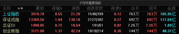A股指数集体高开:创业板指涨1.37%,有色金属、电池等板块涨幅居前