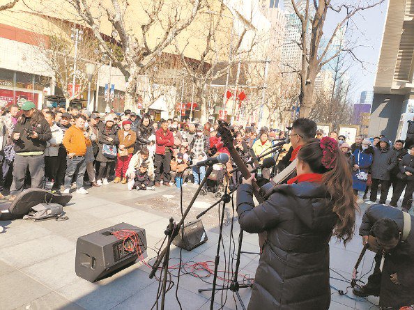 一曲《恭喜发财》拉开演出序幕,林晓明、阿洛、小黑等8位音乐艺人系着红围巾登台,《我和我的祖 国》《欢乐中国年》等歌曲接连唱响。上海街头艺人专委会主任林晓明自2019年投身街头演艺,已是连 续7年留沪过年并参与春节街头拜年演出。这位中医药专业毕业的艺人,早已把街头当作舞台,把市民 当作家人。 街艺表演现场 "恭喜恭喜中国年,五谷丰登笑开颜……"正月初二午后,洒满阳光的静安公园门口,歌声飞扬。林晓 明、阿洛、钱一明等来自祖国各地的上海市持证街头艺人齐聚于此,用歌声与非遗技艺为来自五湖四海 的游客送上新春祝福。这是2014年上海建立持证街艺队伍以来,街艺小分队已坚持了十二年的春节"新 年俗"。热闹的氛围里,有市民的欢笑,有外国友人的惊叹,更有艺人们与城市相融的温暖故事。 欢乐的歌声背后,是艺人对上海的深情眷恋,是城市与陌生人之间的温情相守。彝族艺人阿洛,已是第 九年留沪过年。如今,他在上海成家立业,儿女都在上海生活,街头演出不仅是他的热爱,更是支撑家 庭的力量。谈及过往,阿洛眼眶湿润,此前生病期间,上海医护人员精心医治,市民歌迷暖心相助,春 节里也时常收到慰问与祝福,这份温暖,他始终铭记于心。"能在春节期间,用歌声 ...
