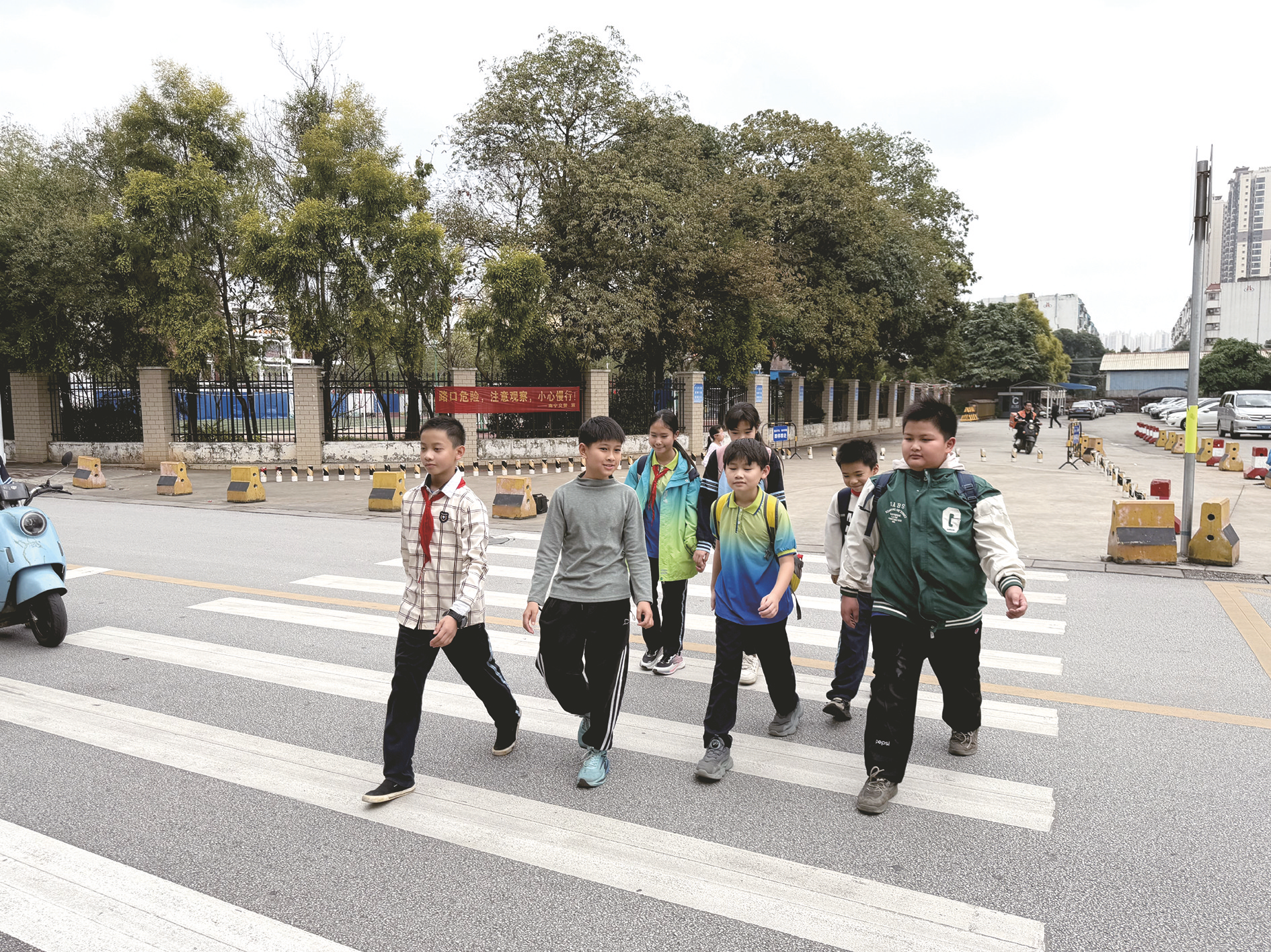 2月27日,记者走访多所学校发现,学校周边道路的交通设施不断完善、通行方案持续优化,城市治理的温度与精度在细节中尽显。在南宁市第四十二中学 校外,新增的限速标志、纵向减速标线形成连贯的警示,时刻提醒过往车辆减速礼让;校园周边不仅增设了新的照明装置,原有路灯的亮度也得到提 升。"我真切感受到了'护学暖心工程'带来的变化,学校周边车辆的行驶更加规范有序,今后我们护送学生上下学也更加放心。"学校教师唐丽媛说,这些看 似微小的举措处处透露着对孩子的关心,让老师和家长都倍感温暖。 精细化治理的触角延伸至幼儿园,安全网编织得更加细密。在南宁市五象新区第二实验幼儿园,交管部门在周边道路科学增设"学校区域"标识,明黄色网状 禁停标线格外醒目,构建起全方位、立体化的校园交通安全防护网。"以前,有的家长接送孩子时会将车辆停在幼儿园门口,存在一定的安全隐患。我园联 动交管部门利用寒假完成了幼儿园周边道路交通标识的升级,让孩子们来园离园更加安全有序。"南宁市五象新区第二实验幼儿园党支部书记、园长唐怡介 绍道。 近日,南宁市鑫利华小学入口过街斑马线的白漆更加鲜明,纵向减速线也在路面清晰延伸,助力学生安全过马路。 本报记者覃雨轩 摄 本 ...