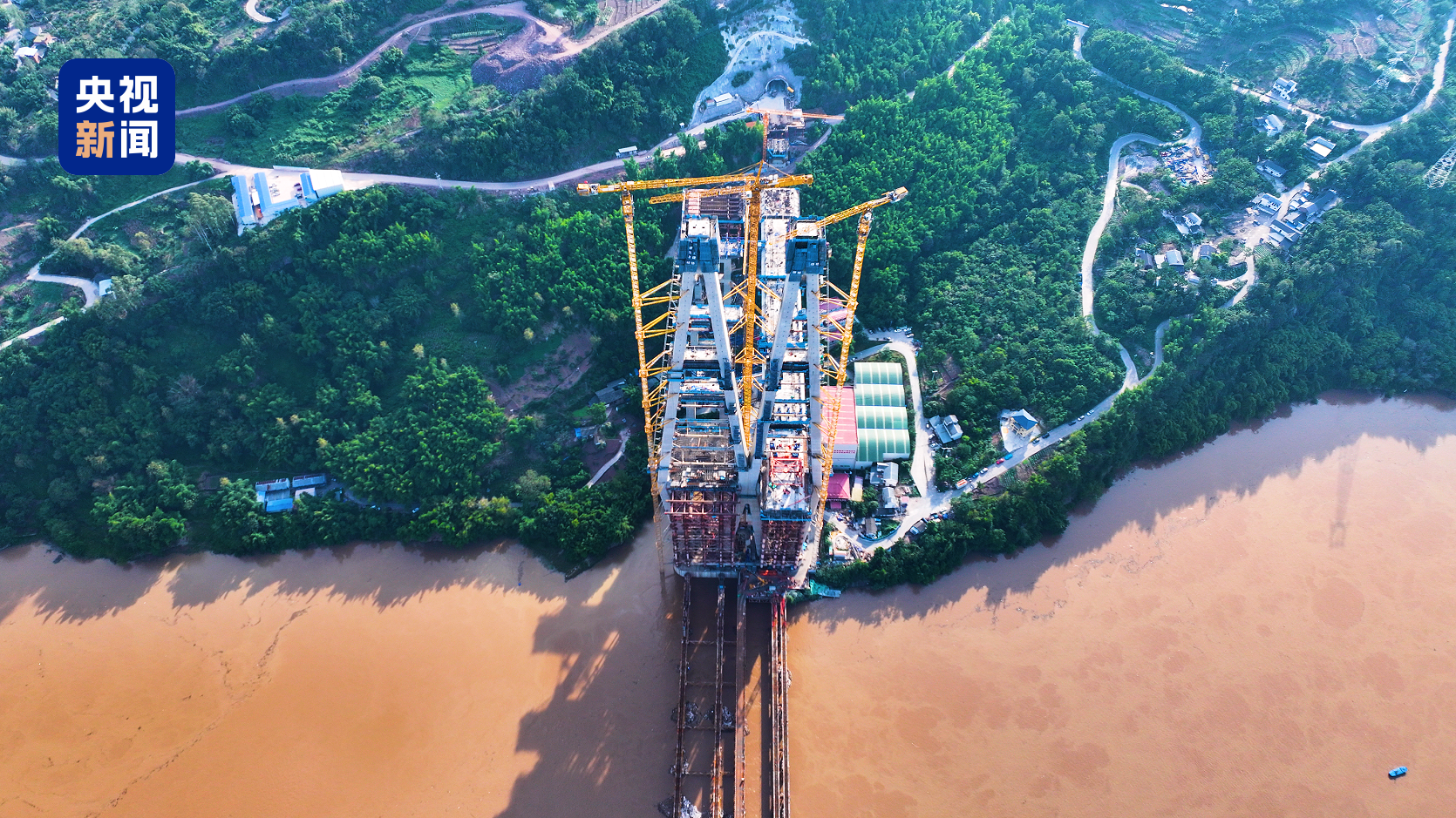 世界最高双联主塔 渝万高铁石沱长江大桥双主塔封顶