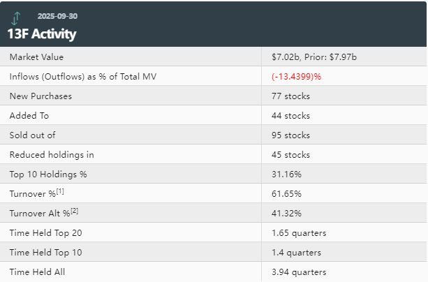 Core Insights - Soros Fund Management reported a total market value of $7.02 billion for Q3 2025, down 13% from $7.97 billion in the previous quarter [1][2] - The fund added 77 new stocks and increased holdings in 44 stocks, while reducing positions in 45 stocks and completely selling out of 95 stocks [1][2] - The top ten holdings accounted for 31.16% of the total market value [1][2] Holdings Overview - The largest holding is Amazon (AMZN.US) with approximately 2.23 million shares valued at about $488.8 million, representing 6.96% of the portfolio, with a significant increase of 481.47% in shares held [3][4] - Smurfit WestRock (SW.US) is the second largest holding with around 7.75 million shares valued at approximately $329.8 million, making up 4.70% of the portfolio, with a 3.56% increase in shares [3][4] - Spotify (SPOT.US) ranks third with about 185 million shares valued at approximately $253.1 million, accounting for 3.61% of the portfolio, with a 29.68% increase in shares [3][4] - Other notable holdings include Globant (GLOB.US) and Google (GOOGL.US), with significant increases in shares of 17.08% and 2341.11% respectively [3][4] Trading Activity - The top five purchases by percentage change in portfolio were Amazon, Invesco S&P 500 Equal Weight ETF (RSP.US), Google, Ford Motor Company (FORD.US), and VanEck Semiconductor ETF (SMH.US, PUT) [5][6] - The top five sales included First Solar (FSLR.US, CALL), iShares Russell 2000 ETF (IWM.US, PUT), Invesco QQQ Trust (QQQ.US, CALL), SPDR S&P 500 ETF (SPY.US, PUT), and Liberty Broadband (LBRDK.US) [5][6]