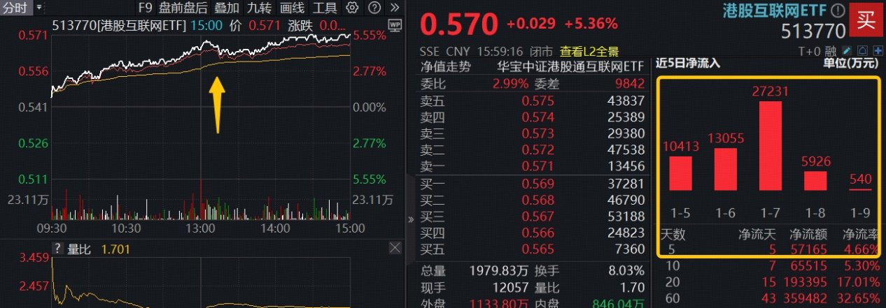 AI应用狂飙+反内卷,港股互联网ETF(513770)暴拉5.36%,资金溢价狂涌,GEO概念股迈富时猛涨32%!