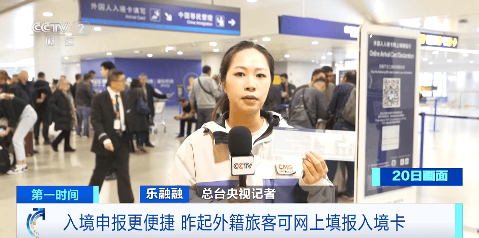 央视网消息:根据11月3日国家移民管理局公布的支持扩大开放服务高质量发展10项创新举措,自11月20日起,外国人入境卡网上 填报措施正式实施。政策实施首日,各个入境口岸的情况如何? 这是一张外国人入境卡,以往外籍旅客到达中国后,需要先填写这张入境卡上的内容,再交由移民管理警察核验。从11月20日起, 外籍旅客可以通过扫码登入国家移民管理局指定平台,进行入境卡网上填报,落地后即可直接进入通关环节,节约通关时间。 在上海浦东国际机场入境大厅里,外国人入境卡网上填报的指引牌被放在了醒目的位置,现场屏幕上循环播放着英、法、阿拉伯语 等多语种填报指引视频,不少外籍旅客都拿出手机扫描二维码,体验网上信息填报。 上海边检总站上海机场边检站边防检查处副处长蒋逸晨表示,上海口岸2025年以来,入境外国人数量大幅增加,截止最近数据已经 超过了530万人次,与2024年相比增幅将近40%。新政的不断红利释放之后,口岸入境外国人数量会进一步提升。 外籍旅客卢卡表示,原来在纸上他需要把所有信息写下来。网上填报后,如果下次再来中国就不用再重复做这个事情,非常安全方 便。 在深圳广深港高铁西九龙站口岸同样迎来了政策落地首日的外籍旅客,不少 ...
