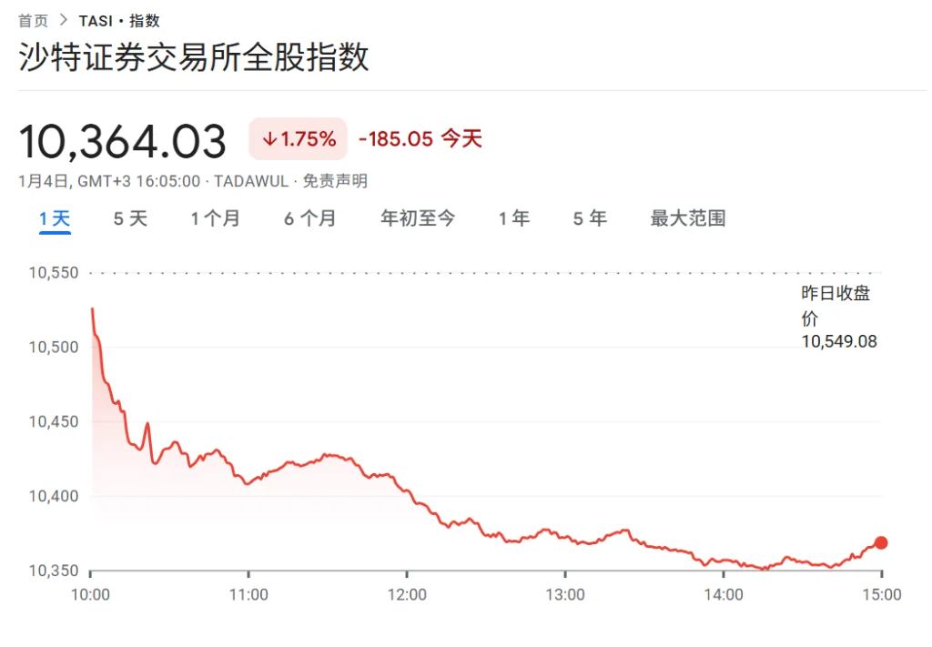 北京时间周日晚间,沙特阿拉伯股市录得将近九个月来最大跌幅,投资者评估也门、伊朗以及委内瑞拉地缘局势紧张可能带来的冲击。 衡量沙特股市整体表现的Tadawul全股指数(Tadawul All Share Index)下跌近2%,为今年4月特朗普的关税政策引发全球市场波动以来的最大单日 跌幅;各行业板块全线收跌。该基准指数也收于2023年10月以来最低水平,过去一个月大部分时间都在这一附近徘徊。 沙特股市刚经历了自2015年以来最差的年度表现。在油价低迷抑制公共支出与企业盈利等多重因素叠加下,市场承压明显。 国际社会承认的也门政府当地时间2025年12月31日宣布,阿拉伯联合酋长国军队当天开始从也门撤离。 自2015年沙特主导多国联军介入也门冲突以来,沙特和阿联酋名义上同属联军成员,但利益并不一致。沙特支持也门政府,阿联酋则与南方过渡 委员会保持密切联系。 对于2026年的走势,观点仍然分化:一些分析师认为,若未来放宽外资持股限制,可能带来上行空间;也有人判断市场整体缺乏动能,短期仍难 看到明显起势。 与此同时,卡塔尔、阿曼和巴林的股市则小幅走高。 消息面上,据央视新闻,也门东部迈赫拉省地方官员4日称,沙特阿拉伯 ...