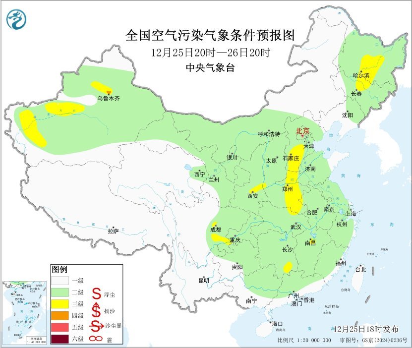 中央气象台:华北中南部黄淮中西部等地大气扩散条件转差