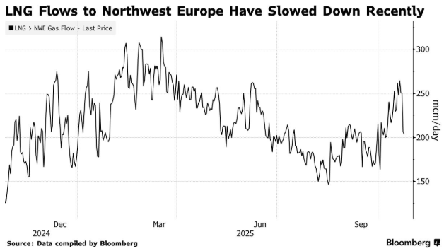 市场对全球天然气流动任何意外或长期的中断,或货物竞争加剧仍保持敏感。由于乌克兰约60%的天然 气产能已被摧毁,该国家今年冬季将从欧盟进口更多天然气。 尽管今年早些时候库存水平异常偏低,欧洲仍在夏季成功积累了充足的天然气库存,目前该地区大型储 存库的填充率接近83%。然而,供暖季初期的寒潮已导致一些国家动用天然气储备。 截至发稿,欧洲天然气基准荷兰近月期货价格上涨0.4%,至每兆瓦时31.62欧元。 近日欧洲海运天然气运输量有所放缓,而该地区最大供应来源挪威的管道输送量也因部分气田维护而下 降。随着西北欧地区气温在经历一段温和天气后预计将下降,这引发了对短期供应的担忧,考验着该地 区的供需平衡。 智通财经APP观察到,欧洲天然气期货价格微幅上涨,交易商正在权衡供应充足面临的风险以及寒冷天 气推高需求的可能性。基准期货价格周三最高上涨0.9%,延续了前一交易日的微薄涨幅。 尽管如此,合约价格仍维持在每兆瓦时32欧元附近,自10月初以来始终难以突破这一狭窄交易区间。 ...