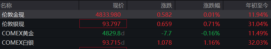 | 名称 | 现价 | 涨跌 | 涨跌幅 | 年初至今 | | --- | --- | --- | --- | --- | | 伦敦金现 | 4833.980 | 0.582 | 0.01% | 11.94% | | 伦敦银现 | 93.797 | 0.659 | 0.71% | 31.04% | | COMEX黄金 | 4829.8d | -7.7 | -0.16% | 11.49% | | COMEX白银 | 93.715d | 1.078 | 1.16% | 32.03% | 高盛大幅上调黄金目标价。 1月21日,高盛全球投资研究部商品团队分析师Daan Struyven与Lina Thomas在报告中,将2026年12月黄金目标价上调至5400 美元/盎司,此前为4900美元/盎司。 就在同一日,现货黄金(伦敦金现)价格冲上4888.43美元/盎司的历史新最高。 不过,1月22日现货黄金价格出现超1%的跌幅,截至发稿时,交投在4830美元/盎司附近,年初至今已有超11%的涨幅。 需要重点观察的三个因素均来自需求端。高盛指出,这三个因素分别为:央行购金是否持续回落:若月度购金估算持续回落 至2022年前 ...