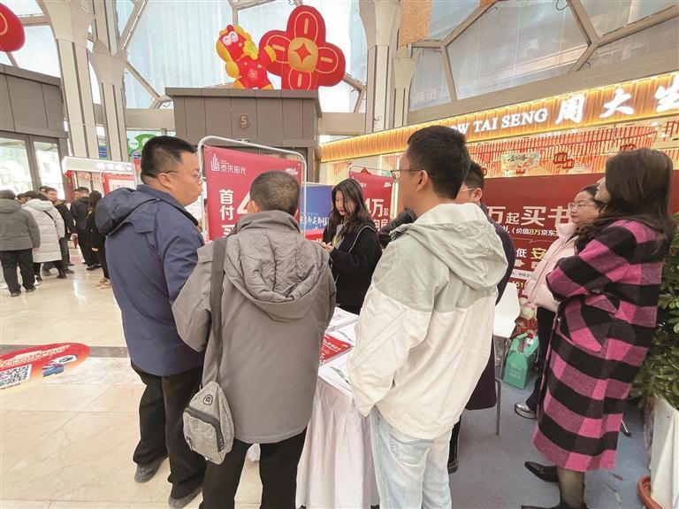 置业顾问为市民讲解楼盘信息。 本报讯(西海新闻记者 徐变银 摄影报道)2月24日正月初八,2026西宁新春住房展示交易会在西宁唐道·637 商业广场火热进行,展会现场人气持续攀升。市民携家带口看房选房,各大楼盘展位前咨询不断,新春置业 热潮持续升温。 展会现场,随处可见市民认真翻阅楼书、拍摄户型图,与家人商议选房的场景。有看房的市民表示,房交会 集中了西宁市优质房源,优惠力度大、信息透明,还能一站式挑选康养、避暑、宜居好房,不用四处奔波就 能对比挑选,省时又省心。现场工作人员坚守岗位,热情接待每一名来访者,细致解读购房政策与展会专属 优惠,让市民安心选房、放心置业。 房交会现场,咨询的市民络绎不绝。 香格里拉城市花园·雅园展位同样人气旺盛。作为深耕西宁的标杆改善项目,雅园以优越地段、成熟配套、舒 适居住体验,契合当下家庭康养避暑、品质宜居的需求,深受改善型家庭青睐。市民周先生带着家人围绕学 区、交通、装修标准等细节深入了解,全家一同对比户型、核算价格,气氛十分热烈。 本届房交会以康养避暑、宜居夏都为核心亮点,汇聚西宁市多家品牌房企,集中展示刚需、改善、康养等全 品类优质房源,同步配套政策咨询、金融信贷、家装家 ...