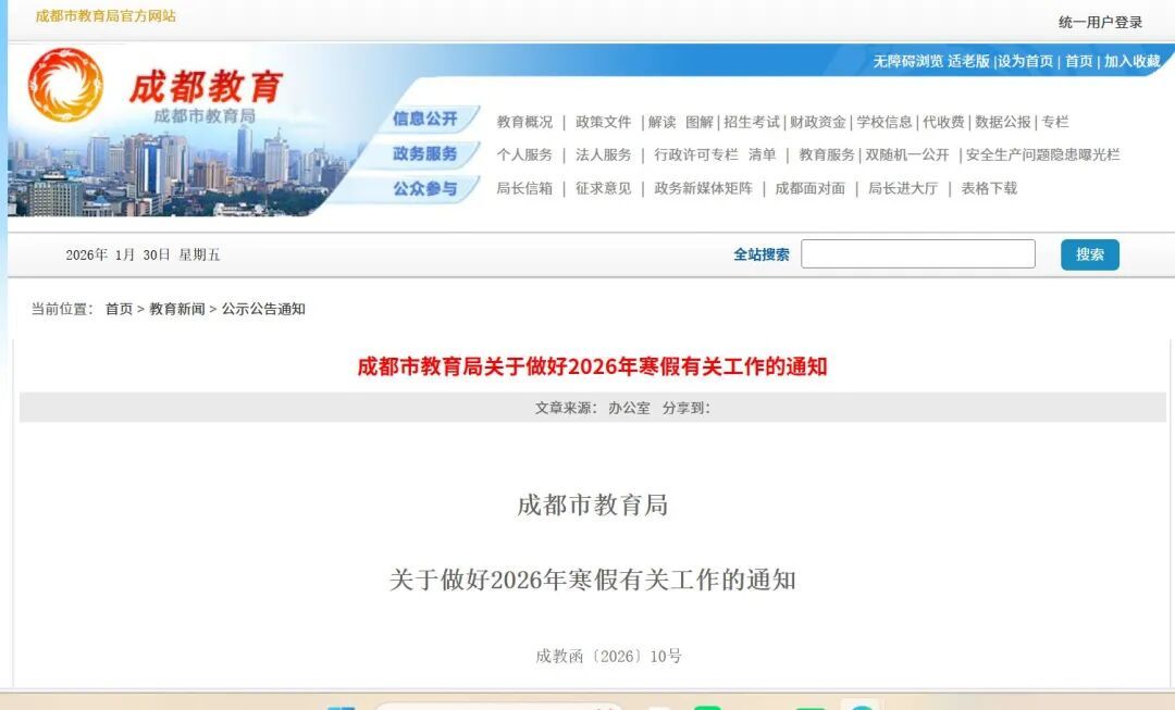 事关寒假!成都市教育局最新通知