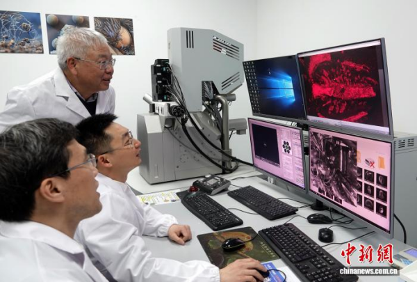 1 月 22 日,在中国科学院南京地质古生物研究所显微 CT 实验室,中国科学院院士、研究员朱茂炎(右 一),副研究员曾晗(左一)和同事观察扫描出来的化石图。新华社记者 金立旺 摄 1 月 22 日,在中国科学院南京地质古生物研究所实验室,团队部分成员:中国科学院院士、研究员朱茂 炎(中),研究员赵方臣(左),副研究员曾晗(右)合影留念。新华社记者 金立旺 摄 1 月 22 日,在中国科学院南京地质古生物研究所举行的发布会上,中国科学院院士、研究员朱茂炎 (右)和副研究员曾晗就花垣生物群的发现回答媒体提问。新华社记者 金立旺 摄 1 月 22 日,中国科学院院士、研究员朱茂炎在中国科学院南京地质古生物研究所会议室留影。新华社记 者 金立旺 摄 1 月 22 日,中国科学院院士、研究员朱茂炎在中国科学院南京地质古生物研究所标本馆留影。新华社记 者 金立旺 摄 1 月 22 日,在中国科学院南京地质古生物研究所标本馆,中国科学院院士、研究员朱茂炎(中),研究 员赵方臣(左),副研究员曾晗(右)查看化石。新华社记者 金立旺 摄 1 月 22 日,在中国科学院南京地质古生物研究所拉曼 - 场发射联用扫描电镜实验室,中 ...