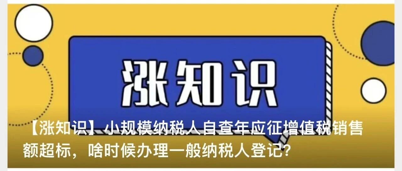 【涨知识】小规模纳税人自查年应征增值税销售额超标,啥时候办理一般纳税人登记?