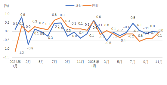 贵州11月份居民消费价格同比转为持平,环比下降0.1%